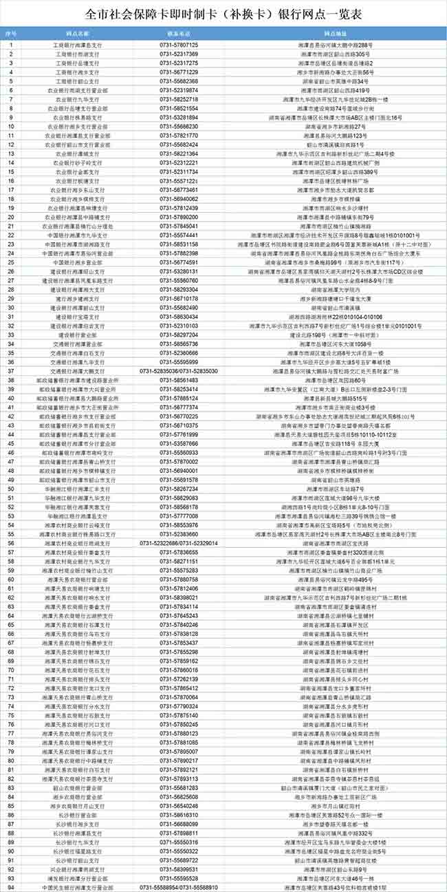 附:全市社會保障卡即時(shí)制卡(補(bǔ)換卡)銀行網(wǎng)點(diǎn)一覽表