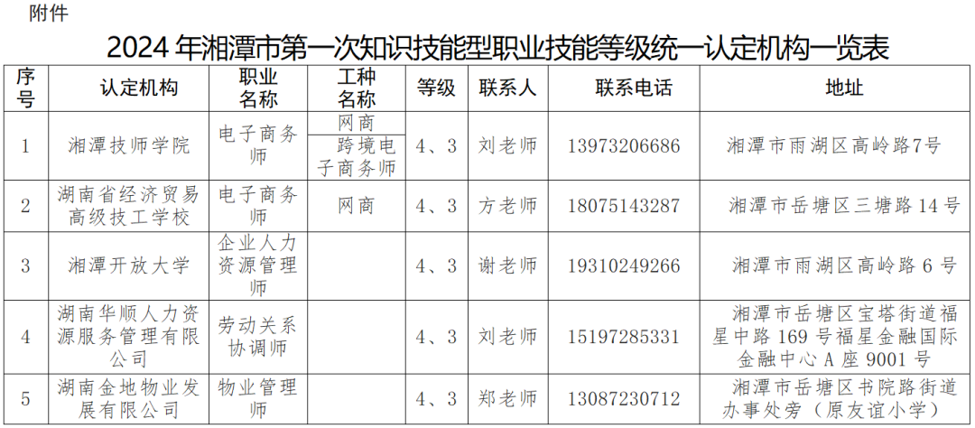 為進(jìn)一步提高全省技能人才評價質(zhì)量,提升職業(yè)技能等級證書含金量,省人社廳定于4月實施2024年第一次知識技能型職業(yè)技能等級統(tǒng)一認(rèn)定,湘潭共有5家職業(yè)技能等級統(tǒng)一認(rèn)定機(jī)構(gòu),可方便和服務(wù)廣大勞動者就地就近參與認(rèn)定。